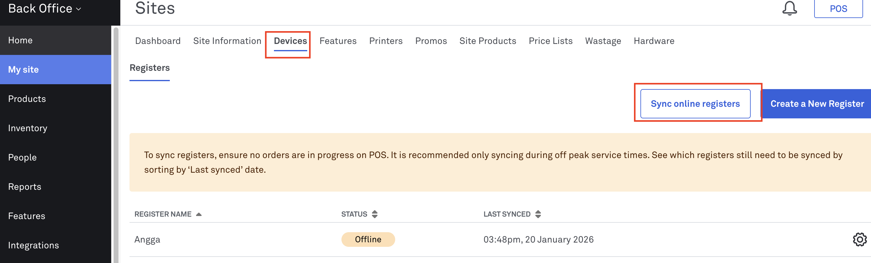 Sync the POS Devices