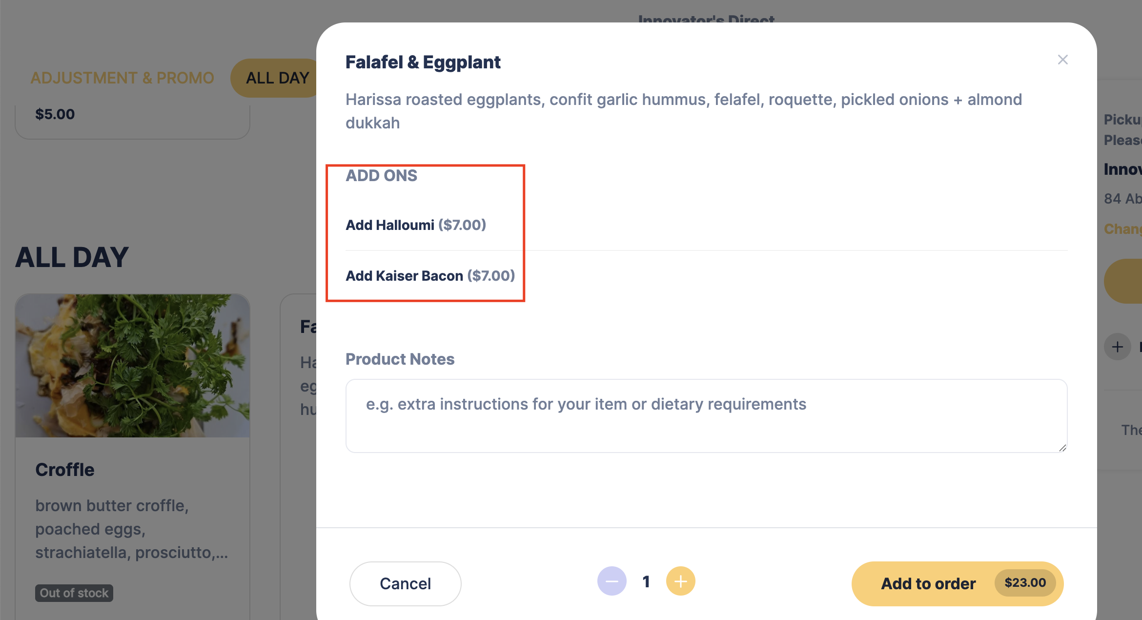 The modifier will be available for online ordering again.
