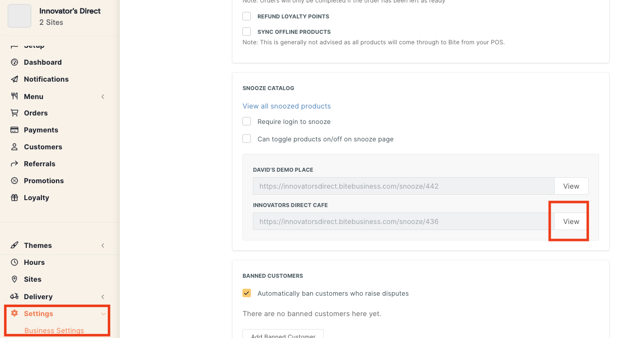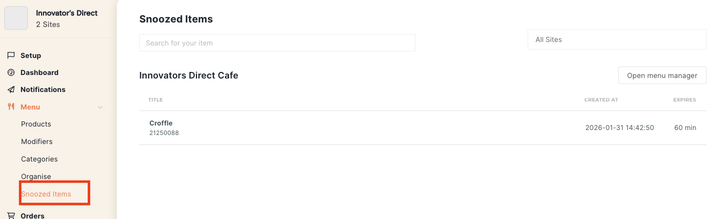 However, in some cases, you may need to snooze products directly from the Bite Back Office, especially if your site is not using POS integration and is operating in standalone mode.